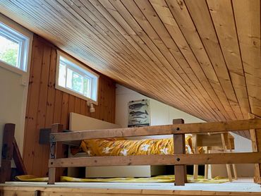 This classic Canadian cabin features a primary bedroom with a king bed, a second bedroom with a queen and bunk bed, and a loft bedroom with a queen. As well, it includes a cozy living area, a dining table that can seat 10, with a fully equipped kitchen, and a spacious deck with seating and an outdoor fireplace. All cabins have access to our collection of kayaks, stand-up paddle boards, canoes and a pedalboat.